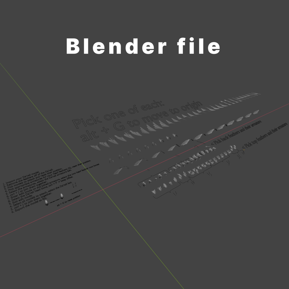 A unity package containing assets and tool required to apply the custom feathers to the Da'vali avatar inside of unity. A blender file containing all the assets.